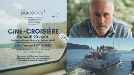 Préparez-vous pour une expérience cinématographique inoubliable en mer, en compagnie de notre invité d’honneur Roy Dupuis, lors de la traditionnelle Ciné-croisière du festival Les Percéides. Ne manquez pas cette occasion unique de partager un moment privilégié avec l’une des grandes figures du cinéma québécois, tout en profitant d’une vue magnifique sur le Rocher Percé et l’Île Bonaventure, célèbre pour sa spectaculaire colonie de fous de bassan.