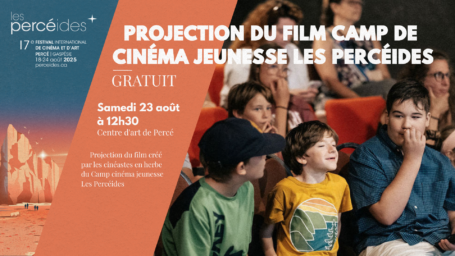 Venez découvrir le court-métrage réalisé par les jeunes cinéastes du Camp de cinéma jeunesse Les Percéides! Une projection touchante et pleine de créativité qui met en lumière le regard unique de la relève sur le monde qui l’entoure. Un beau moment à partager en famille ou entre passionné.es de cinéma.
