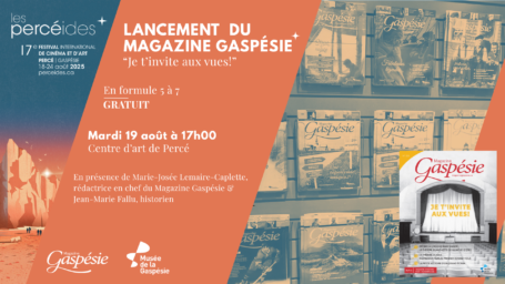 L’événement se déroulera en présence de Marie-Josée Lemaire-Caplette, rédactrice en chef du Magazine Gaspésie, et de Jean-Marie Fallu, historien, qui offrira une courte conférence dans la salle de cinéma. La soirée se poursuivra avec la projection de Percé on the Rocks (Gilles Carle) et Reportages nº 45, deux courts-métrages gaspésiens issus des archives de l’ONF.
