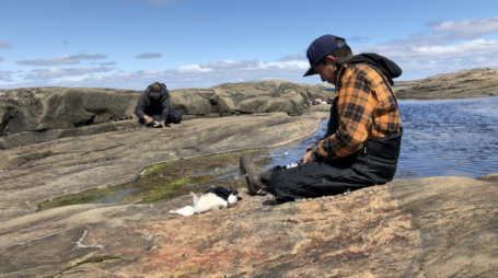 À l’occasion du nettoyage et du lissage de la peau de son tambour, le regretté chef spirituel et chasseur innu Andrew Poker partage des moments de sa vie avec son petit-neveu.